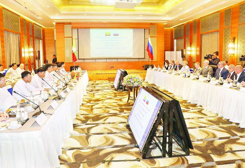 ပြည်ထောင်စုဝန်ကြီးများနှင့် ရုရှားဖက်ဒရေးရှင်းနိုင်ငံ နိုဗိုစီဗစ်ဒေသအုပ်ချုပ်ရေးမှူး H.E.Mr. Andrey Travnikov ဦးဆောင်သော ကိုယ်စားလှယ်အဖွဲ့တို့ တွေ့ဆုံဆွေးနွေးပွဲကို ယနေ့မွန်းလွဲပိုင်းတွင် နေပြည်တော်ရှိ Jasmine Naypyitaw Hotel ၌ ကျင်းပသည်။
