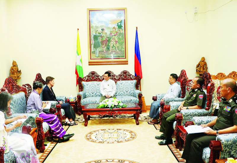 လူဝင်မှုကြီးကြပ်ရေးနှင့်ပြည်သူ့အင်အားဝန်ကြီးဌာန ပြည်ထောင်စုဝန်ကြီး ဦးမြင့်ကြိုင်သည် မြန်မာနိုင်ငံဆိုင်ရာ ကုလသမဂ္ဂယာယီဌာနေညှိနှိုင်းရေးမှူးနှင့် လူသားချင်းစာနာထောက်ထားမှုဆိုင်ရာ ယာယီညှိနှိုင်းရေးမှူးဖြစ်သူ Ms. Gwyn Lewis နှင့်အဖွဲ့အား ယနေ့နံနက်ပိုင်းတွင် နေပြည်တော်ရှိ အဆိုပါဝန်ကြီးဌာန ပြည်ထောင်စုဝန်ကြီး၏ ဧည့်ခန်းမ၌ လက်ခံတွေ့ဆုံသည်။