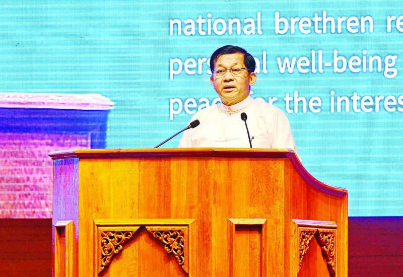 ပြည်ထောင်စုသမ္မတမြန်မာနိုင်ငံတော် ယာယီသမ္မတ ဗိုလ်ချုပ်မှူးကြီး မင်းအောင်လှိုင်နဲ့ ဂုဏ်သရေရှိလူကြီးမင်းများ၊ နိုင်ငံရေးပါတီများ၊ တိုင်းရင်းသားလက်နက်ကိုင်အဖွဲ့အစည်းများရဲ့ ကိုယ်စားလှယ်တော်များ၊ ဧည့်သည်တော်များ ခင်ဗျာ
