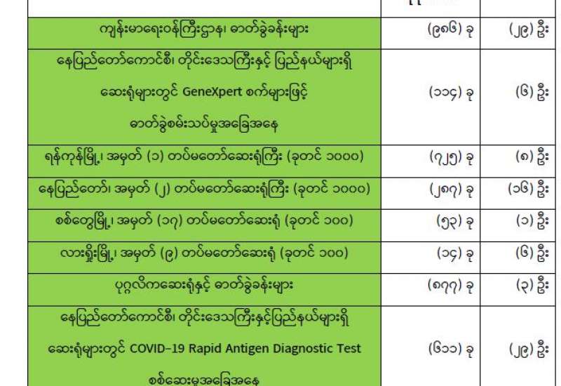 ကျန်းမာရေးဝန်ကြီးဌာနအနေဖြင့် နိုင်ငံအတွင်း ကူးစက်ဖြစ်ပွားနေသော COVID-19 ရောဂါ ကာကွယ်၊ ကုသ၊ ထိန်းချုပ်ရေးလုပ်ငန်းများကို အရှိန်အဟုန်မြှင့် ဆောင်ရွက်လျက်ရှိပါသည်။