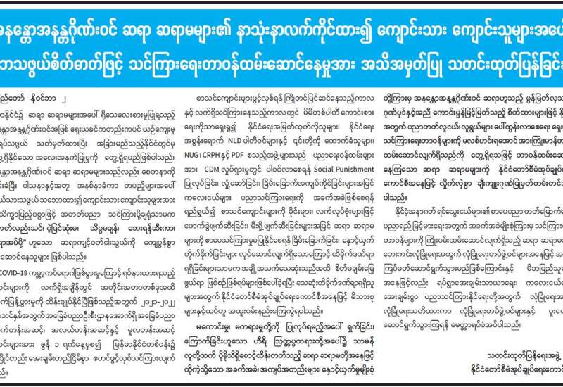 အကြမ်းဖက်အဖွဲ့ဖြစ်သည့် NUG အဖွဲ့သည် မြန်မာနိုင်ငံအတွင်း အကြမ်းဖက် လုပ်ငန်းများကို စတင်ဆောင်ရွက်ရန် စက်တင်ဘာလ ၇ ရက်တွင် ကြေညာခဲ့ပြီးနောက် လမ်းပန်းဆက်သွယ်ရေးခက်ခဲသည့် ချင်းပြည်နယ်နှင့် စစ်ကိုင်းတိုင်းဒေသကြီး အတွင်းရှိ အချို့ဒေသများတွင် အကြမ်းဖက်မှုလုပ်ရပ်များကို ဦးတည်လုပ်ဆောင် လျက်ရှိသည်။ ထိုသို့အကြမ်းဖက်လုပ်ရပ်များ လုပ်ဆောင်လျက်ရှိရာတွင် ဒေသခံပြည်သူလူထုအတွက် လမ်းပန်းဆက်သွယ်ရေးနှင့် ကျန်းမာရေးကိစ္စရပ်များ အတွက် အလေးထားအသုံးပြုလျက်ရှိသော လမ်းတံတားများအား ဖောက်ခွဲဖျက်ဆီးခြင်း၊ အပြစ်မဲ့ပြည်သူလူထုအား စိုးရိမ်ထိတ်လန့်စေ၍ မြို့၊ ရွာများတွင် မနေထိုင်ရဲစေရေး မြို့၊ ရွာများအား မီးရှို့ဖျက်ဆီးခြင်းများအပြင် ဒလန်ဟုစွပ်စွဲ၍ သတ်ဖြတ်ခြင်းများကို လုပ်ဆောင်လျက်ရှိသည်။