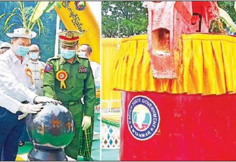 ကချင်ပြည်နယ်၊ မြစ်ကြီးနားမြို့ရှိ ဧရာဝတီမြစ်ကူး(ဗလမင်းထင်)တံတား အမှတ်(၂)ပန္နက်တော်တင်မင်္ဂလာကို ယနေ့နေ့လယ်ပိုင်းတွင် ပြုလုပ်ရာ ဆောက်လုပ် ရေးဝန်ကြီးဌာန ပြည်ထောင်စုဝန်ကြီး ဦးရွှေလေး၊ ကချင်ပြည်နယ်ဝန်ကြီးချုပ် ဦးခက်ထိန်နန်၊ မြောက်ပိုင်းတိုင်းစစ်ဌာနချုပ် တိုင်းမှူး ဗိုလ်မှူးချုပ် မြတ်သက်ဦး နှင့် ဌာနဆိုင်ရာတာဝန်ရှိသူများ၊ ဖိတ်ကြားထားသူများ တက်ရောက်ကြသည်။