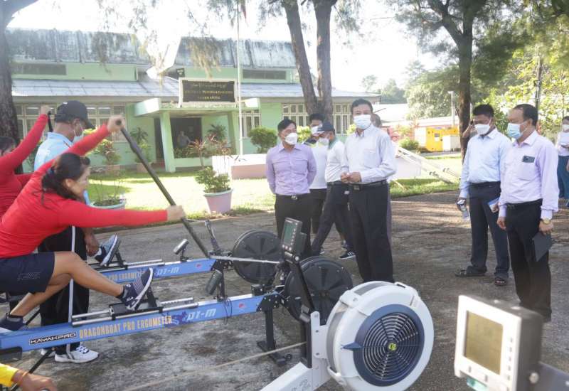 အားကစားနှင့် လူငယ်ရေးရာဝန်ကြီးဌာနပြည်ထောင်စုဝန်ကြီး ဦးမင်းသိန်းဇံသည် ယနေ့ နံနက် ၇နာရီခွဲတွင် ရန်ကုန်တိုင်းဒေသကြီးအစိုးရ အဖွဲ့လူမှုရေးဝန်ကြီး ဦးဌေးအောင်နှင့်အတူ အင်းယားလမ်းရှိ မြန်မာနိုင်ငံလှေလှော်အဖွဲ့ချုပ်သို့ ရောက်ရှိပြီး စားရိပ်သာနှင့် အိပ်ဆောင်များကို လိုက်လံကြည့်ရှု စစ်ဆေး၍ အားကစားသမားများ၏ လေ့ကျင့်နေမှုကို ကြည့်ရှုအားပေးသည်။