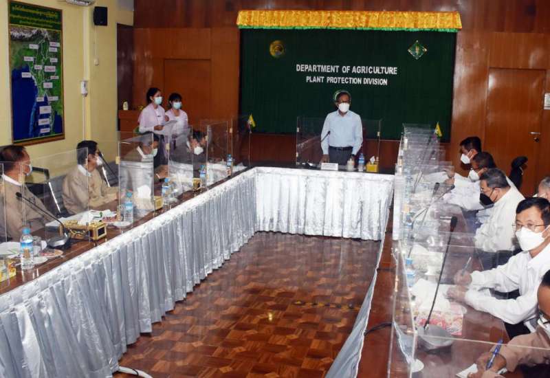 စိုက်ပျိုးရေး၊မွေးမြူရေးနှင့်ဆည်မြောင်းဝန်ကြီးဌာန ပြည်ထောင်စုဝန်ကြီး ဦးတင်ထွဋ်ဦး သည် ယနေ့ နံနက် ၉နာရီခွဲတွင် ရန်ကုန်တိုင်း ဒေသကြီး အင်းစိန်မြို့နယ်ရှိ စိုက်ပျိုးရေးဦးစီးဌာန သီးနှံကာကွယ်ရေး ဌာနခွဲ အစည်းအဝေးခန်းမ၌ ကျင်းပသည့် မြန်မာနိုင်ငံ သွင်းကုန်ထုတ်ကုန် လုပ်ငန်းရှင်များမှ တာဝန်ရှိသူ များနှင့် တွေ့ဆုံဆွေးနွေးပွဲသို့ တက်ရောက် ဆွေးနွေးပြောကြား သည်။
