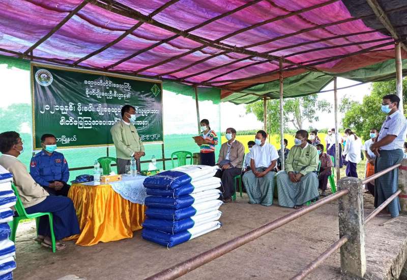 ဧရာဝတီတိုင်းဒေသကြီး၊ ငပုတောမြို့နယ်အတွင်းရှိ ၂၀၂၁ ခုနှစ်၊ မိုးစပါးမျိုးစေ့ထုတ် တောင်သူများအား စိုက်ပျိုးရေးဦးစီးဌာနက ဓာတ်မြေဩဇာထောက်ပံ့ပေးအပ်ပွဲကို ယမန်နေ့နံနက်ပိုင်းက သက္ကယ်ချောင်း စံပြကျေးရွာ၌ပြုလုပ်ခဲ့သည်။