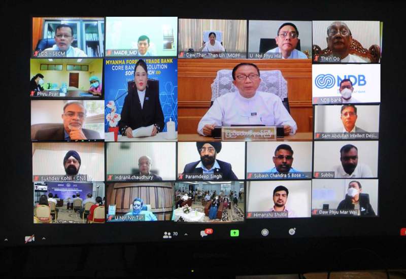 စီမံကိန်းနှင့်ဘဏ္ဍာရေးဝန်ကြီးဌာန၊ မြန်မာ့နိုင်ငံခြားကုန်သွယ်မှုဘဏ်၏ Core Banking and Trade Finance နှင့် Enterprise Resource Planning (ERP) system တို့ကို စတင်အသုံးပြုခြင်း မိတ်ဆက်ပွဲအခမ်းအနားကို ယနေ့နံနက် ၁၁ နာရီက ရန်ကုန်မြို့၊ မြန်မာ့နိုင်ငံခြားကုန်သွယ်မှုဘဏ် (ရုံးချုပ်)၊ အစည်းအဝေးခန်းမ၌ Virtual စနစ်ဖြင့် ကျင်းပသည်။