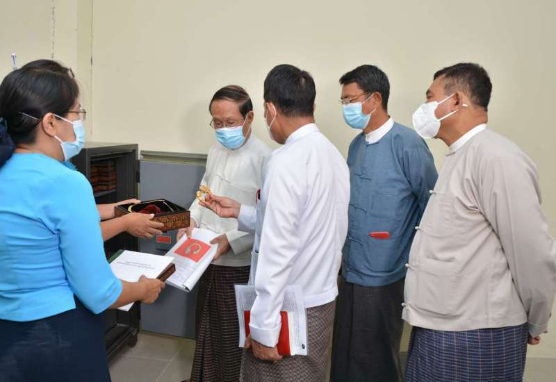 သာသနာရေးနှင့် ယဉ်ကျေးမှုဝန်ကြီးဌာန ပြည်ထောင်စုဝန်ကြီးဦးကိုကိုနှင့် ဒုတိယဝန်ကြီး ဦးထွန်းအုံတို့သည် ယနေ့မွန်းလွဲ ၂ နာရီက အမျိုးသားပြတိုက်(နေပြည်တော်)သို့ ရောက်ရှိပြီး Vault အခန်းတွင် ထိန်းသိမ်းထားရှိသော ယဉ်ကျေးမှုတန်ဖိုးမြင့်မားသည့် မြင်းမူမြို့နယ်မှ ရရှိသော နယားခေါင်းလက်ကြပ်၊ ကျိုက္ကသာမြို့ဟောင်းမှရရှိသော ရွှေပြားများ၊ ပုဂံခေတ်တာ ရာဒေဝီ နတ်သမီးပုံ၊ ပုလဲမြို့နယ်မှရရှိသော ပျူခေတ်ပုတီးလုံးများ၊ တွံတေးမြို့နယ်မှရရှိသော ပုဂံခေတ်ရွှေအုန်းဖူး ဆွဲကြိုးအစရှိသည့် ယဉ်ကျေးမှုအမွေ အနှစ်ရှေးဟောင်းရွှေထည် ပစ္စည်း(၆၀၁)ခုကို ကြည့်ရှုစစ်ဆေးရာ ရှေးဟောင်းသုတေသနနှင့် အမျိုးသားပြတိုက်ဦးစီးဌာန ညွှန်ကြား ရေးမှူးချုပ် ဦးကျော်ဦးလွင်နှင့် အမျိုးသားပြတိုက် ညွှန်ကြားရေးမှူး ဒေါက်တာ အေးအေးသင်းတို့က ရှင်းလင်းတင်ပြကြသည်။