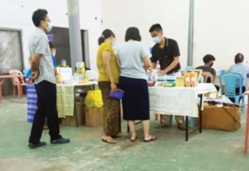 ကိုဗစ်-၁၉ ရောဂါ တတိယလှိုင်းဖြစ်ပွားနေသည့်ကာလအတွင်း ရန်ကုန်တိုင်း ဒေသကြီးအတွင်းရှိ ပြည်သူများ၏ ဆေးဝါးလိုအပ်ချက်အား ဖြည့်ဆည်းပေးနိုင်ရေး၊ ဆေးဝါးများလွယ်လင့် တကူဝယ်ယူနိုင်ရေး အရည်အသွေးနှင့်ဈေးနှုန်းမှန်ကန်စွာရရှိစေ ရေးအတွက် ရန်ကုန်တိုင်းဒေသကြီး အစိုးရအဖွဲ့၏ ညွှန်ကြားချက်အရ မြန်မာနိုင်ငံ ဆေးနှင့် ဆေးပစ္စည်းလုပ်ငန်းရှင်များအသင်း၏စီစဉ်မှုဖြင့် ဒုတိယနေရာအဖြစ် ပန်းဘဲတန်းမြို့နယ်၊ ကုန်သည်လမ်းနှင့် ဗိုလ်ဆွန်ပက်လမ်းထောင့်ရှိ မြန်မာ အပြည်ပြည်ဆိုင်ရာ ကုန်သွယ်မှုဗဟိုဌာန အဆောက်အအုံ၌ အိမ်သုံးဆေးဝါးများ လက်လီ လက်ကား ဖြန့်ဖြူး ရောင်းချခြင်းအစီအစဉ်ကို ယနေ့တွင် ဆက်လက်ဆောင်ရွက်ခဲ့ရာ ဆေးနှင့် ဆေး ပစ္စည်း ဖြန့်ဖြူးရောင်းချသောကုမ္ပဏီ ၁၁ ခုမှ ငွေကျပ် ၁ သိန်းကျော်တန်ဖိုးရှိ အိမ်သုံး ဆေးဝါး ၁၅၆ မျိုးအား ရောင်းချပေးခဲ့သည်။