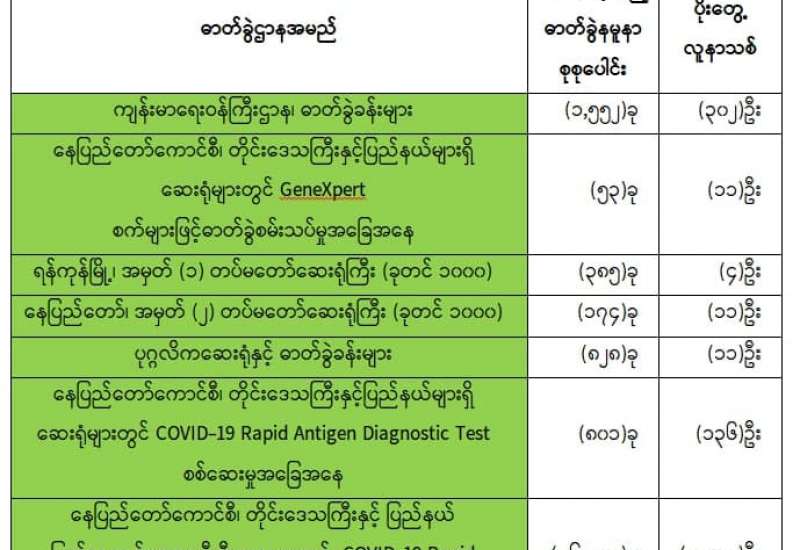 ကိုဗစ်-၁၉ ရောဂါဓာတ်ခွဲအတည်ပြု ပိုးတွေ့လူနာများနှင့် သီးသန့်စောင့် ကြည့်ရမည့်သူများကို ကုသရေး လုပ်ငန်းများ ဆောင်ရွက်ရာတွင် အောက်ဆီဂျင် လိုအပ်ချက်များကို တစ်ဖက်တစ် လမ်းမှ အထောက်