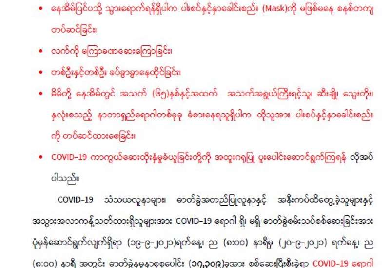 (၂၀၂၁ ခုနှစ်၊ စက်တင်ဘာလ (၂၀)ရက်နေ့ ည(၇:၀၀)နာရီအချိန် ထုတ်ပြန်ချက်)