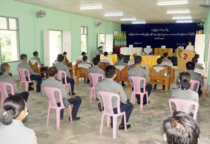 နေပြည်တော် ကောင်စီမှ ကိုဗစ်-၁၉ရောဂါ တားဆီးကာကွယ်ရေးလုပ်ငန်းများကို စွမ်းစွမ်း တမံပါဝင် ဆောင်ရွက် ခဲ့ကြသည့် မြန်မာနိုင်ငံရဲတပ်ဖွဲ့ဝင်များကို စားသောက်ကုန်များ ထောက်ပံ့ခြင်း အခမ်းအနားကို ယနေ့နံနက်(၉)နာရီတွင် နေပြည်တော်ရဲတပ်ဖွဲ့မှူးရုံး အစည်းအဝေးခန်းမ၌ ကျင်းပသည်။