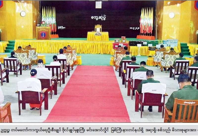 နိုင်ငံတော်စီမံအုပ်ချုပ်ရေးကောင်စီ ဥက္ကဋ္ဌ၊ နိုင်ငံတော်ဝန်ကြီးချုပ် ဗိုလ်ချုပ်မှူးကြီး မင်းအောင်လှိုင်သည် ယနေ့မွန်းလွဲပိုင်းတွင် ကချင်ပြည်နယ်အစိုးရအဖွဲ့ဝင်များ၊ ဌာနဆိုင်ရာ ဝန်ထမ်းများ၊ ခရိုင်၊ မြို့နယ်စီမံအုပ်ချုပ်ရေးအဖွဲ့ဝင်များနှင့် မြို့မိမြို့ဖ များအား ကချင်ပြည်နယ် အစိုးရအဖွဲ့ရုံး မလိခခန်းမ၌ တွေ့ဆုံ အမှာစကား ပြော ကြားသည်။