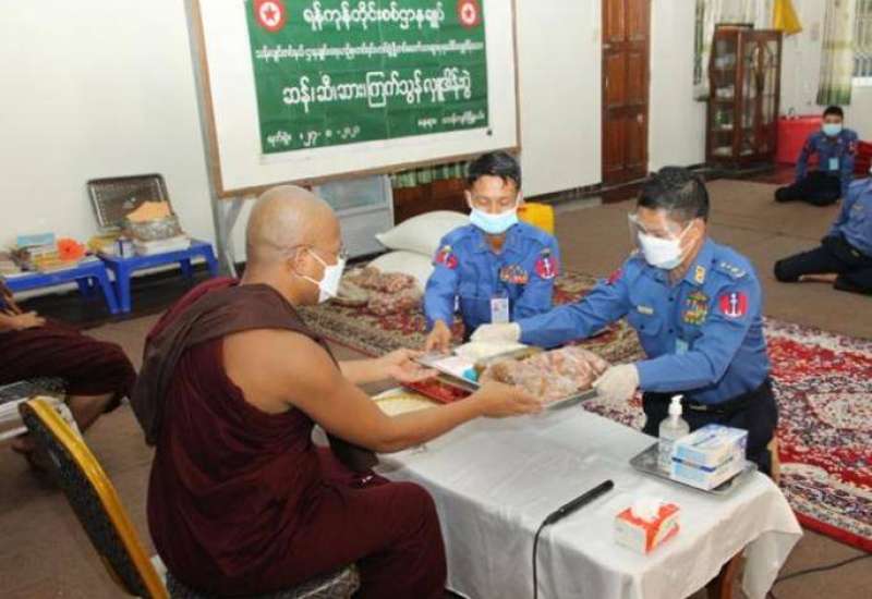 တပ်မတော်(ကြည်း၊ရေ၊လေ) အရာရှိ၊ စစ်သည်၊ အရာထမ်း၊ အမှုထမ်းများနှင့် စေတနာရှင် အလှူရှင်များက ကိုဗစ်-၁၉ ရောဂါ ကြိုတင်ကာကွယ်ရေးလုပ်ငန်းများ ဆောင်ရွက်နေသည့် ကာလအတွင်း ဆွမ်းကိစ္စရပ်များ အဆင်ပြေစေရန်ရည်ရွယ်၍ မြို့နယ်အသီးသီးရှိ ဘုန်းတော်ကြီး ကျောင်းများ၊ သာသနာ့နွယ်ဝင် သီလရှင်ကျောင်း များနှင့် ဘာသာရေးကျောင်းများတွင် ဆွမ်းဆန်တော်၊ ဆီ၊ ဆား၊ ပဲ အမယ်(၄)မျိုးနှင့် လှူဖွယ်ပစ္စည်းများလှူဒါန်းခြင်း၊ နေ့ဆွမ်းများ ဆက်ကပ်လှူဒါန်းခြင်းနှင့် ကျန်းမာရေး စစ်ဆေးပေးခြင်းများကို ဆောင်ရွက်လျက်ရှိသည်။
