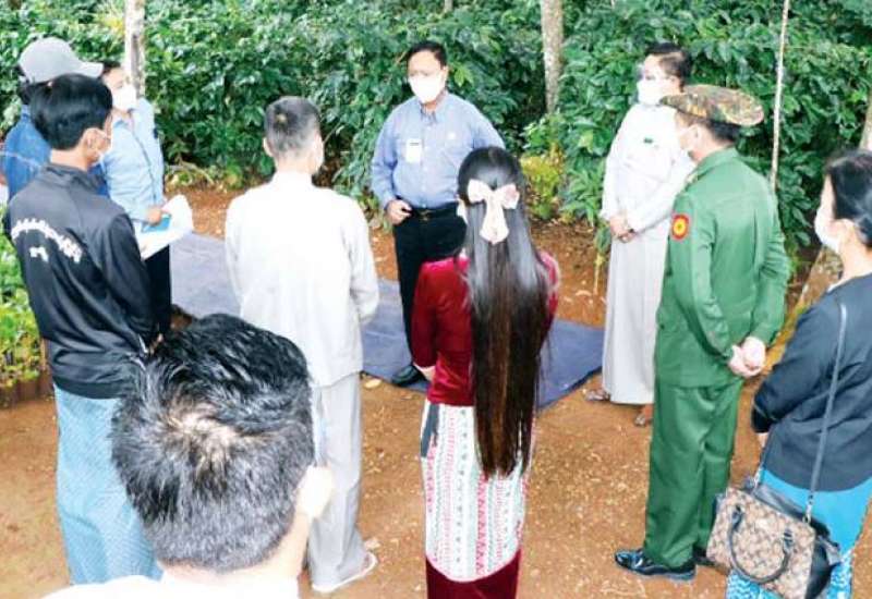 သမဝါယမနှင့် ကျေးလက်ဖွံ့ဖြိုးရေးဝန်ကြီးဌာန ပြည်ထောင်စုဝန်ကြီး ဦးလှမိုးသည် ဩဂုတ် ၂၄ ရက် က ရှမ်းပြည်နယ်(တောင်ပိုင်း)ရွာငံမြို့နယ်အတွင်းရှိ ကော်ဖီစိုက်ပျိုးထုတ်လုပ်ရေး သမဝါယမအသင်း များ၏ လိုအပ်ချက် များကို ဖြည့်ဆည်းပေးနိုင်ရေးနှင့် ဒေသဖွံ့ဖြိုးရေးလုပ်ငန်းများ အကောင်အထည်ဖော်ဆောင်ရွက်နေမှုကို ကွင်းဆင်း ကြည့်ရှုစစ်ဆေး သည်။