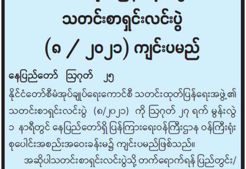 ၂၀၂၁ ခုနှစ် အောက်တိုဘာလမှ ၂၀၂၂ ခုနှစ် မတ်လအထိ (၆)လအတွက် ပြည်ထောင်စု၏ အရအသုံး ခန့်မှန်းခြေငွေစာရင်းများ တင်ပြခြင်းဆိုင်ရာ ညှိနှိုင်း အစည်းအဝေးကို ယနေ့မွန်းလွဲပိုင်းတွင် နေပြည်တော်ရှိ နိုင်ငံတော်စီမံအုပ်ချုပ်ရေးကောင်စီ ဥက္ကဋ္ဌရုံး အစည်းအဝေးခန်းမ၌ကျင်းပရာ ဘဏ္ဍာရေးဆိုင်ရာကော်မရှင် ဒုတိယဥက္ကဋ္ဌ၊ နိုင်ငံတော် စီမံအုပ်ချုပ်ရေးကောင်စီ ဒုတိယဥက္ကဋ္ဌ၊ ဒုတိယဝန်ကြီးချုပ် ဒုတိယ ဗိုလ်ချုပ်မှူးကြီး စိုးဝင်း တက်ရောက် အမှာစကား ပြောကြားသည်။