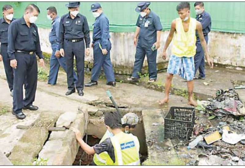 ရန်ကုန်တိုင်းဒေသကြီး စည်ပင်သာယာရေးဝန်ကြီး၊ ရန်ကုန်မြို့တော် စည်ပင်သာယာရေး ကော်မတီဥက္ကဋ္ဌ(မြို့တော်ဝန်) ဦးဗိုလ်ဌေးသည် ယနေ့ နံနက် ၇ နာရီတွင် ရန်ကင်းမြို့နယ် ဆရာစံလမ်း၊ မြောက်မြင်းပြိုင် ကွင်းလမ်းနှင့် အနောက်မြင်းပြိုင်ကွင်းလမ်းဆုံသို့ သွားရောက်၍ အင်ဂျင်နီယာဌာန (လမ်းနှင့်တံတား)မှ တာဝန်ယူခင်းနေသည့် ဧရိယာ ၈၀၀၂၈ စတုရန်းပေ၊ ထု ၁၁ လက်မရှိ လမ်းသားတင်ကွန်ကရစ် ခင်းနေမှုနှင့် ရေစီးရေလာ စီမံခန့်ခွဲမှုဌာနမှ ဆောင်ရွက်နေသည့် ဆရာစံလမ်းတစ်လျှောက် လူသွားလမ်း ပလက်ဖောင်းအောက်ရှိ ရေမြေခြင်းများကို ရေစီးရေလာကောင်းမွန်စေရန် အမှိုက်များဆယ်ယူ ရှင်းလင်းနေမှုတို့ကို ကြည့်ရှုစစ်ဆေးပြီး လိုအပ်သည်များ မှာကြားသည်။