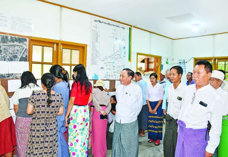 ပြည်ထောင်စုရွေးကောက်ပွဲကော်မရှင်အဖွဲ့ဝင် ဦးမျိုးလှိုင်သည် ယနေ့နံနက်ပိုင်းတွင် တာဝန်ရှိသူများနှင့်အတူ ပြည်ထောင်စုနယ်မြေ နေပြည်တော်ဥတ္တရသီရိမြို့နယ်နှင့် ပုဗ္ဗသီရိမြို့နယ်အတွင်း ၂၀၂၅ ခုနှစ်၊ အထွေထွေရွေးကောက်ပွဲအတွက် မဲစာရင်းများ ပထမအကြိမ်ကြေညာထားမှုအား လှည့်လည်ကြည့်ရှုအားပေးသည်။