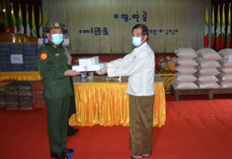 ကိုဗစ်- ၁၉ ရောဂါ ကာကွယ်၊ ထိန်းချုပ်၊ ကုသရေးလုပ်ငန်းများကို အရှိန် အဟုန်မြှင့် ဆောင်ရွက်လျက်ရှိရာ သွားလာမှုကန့်သတ်ချက်များကြောင့် စစ်မှုထမ်း ဟောင်းအဖွဲ့ဝင်များ၊ မြန်မာနိုင်ငံရဲတပ်ဖွဲ့ဝင်များ၊ ပြည်သူ့စစ်(ဌာနေ)တပ်ဖွဲ့ဝင်များ၊ ကျန်းမာရေးဝန်ထမ်းများ၊ စေတနာ့ဝန်ထမ်း Volunteerများနှင့် ဒေသခံပြည်သူများ စားရေးအဆင်ပြေစေရေးအတွက် တပ်မတော်နှင့် စေတနာရှင်အလှူရှင်များက စားသောက်ဖွယ်ရာများနှင့် ရောဂါ ကာကွယ်ရေးအထောက်အကူပြုပစ္စည်းများကို ထောက်ပံ့လှူဒါန်းလျက်ရှိသည်။