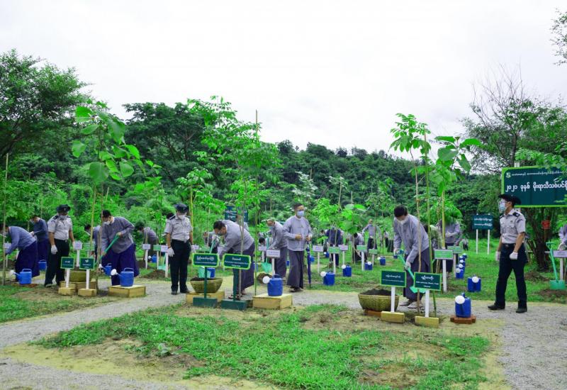 သယံဇာတနှင့် သဘာဝပတ်ဝန်းကျင်ထိန်းသိမ်းရေး ဝန်ကြီးဌာန၊ ၂၀၂၁ ခုနှစ်၊ မိုးရာသီ သစ်ပင်စိုက်ပျိုးပွဲကို ယနေ့ နံနက် ၇ နာရီခွဲက နေပြည်တော်ကောင်စီနယ်မြေ၊ ဥတ္တရခရိုင်၊ ဥတ္တရသီရိမြို့နယ်၊ ဖိုးဇောင်တောင်ကြိုးဝိုင်း(၃)၌ ကိုဗစ်-၁၉ ကာကွယ်၊ ထိန်းချုပ်၊ ကုသရေးဗဟိုကော်မတီ၏ လမ်းညွှန်ချက်၊ စည်းမျဉ်းစည်းကမ်းများနှင့်အညီ ကျင်းပသည်။