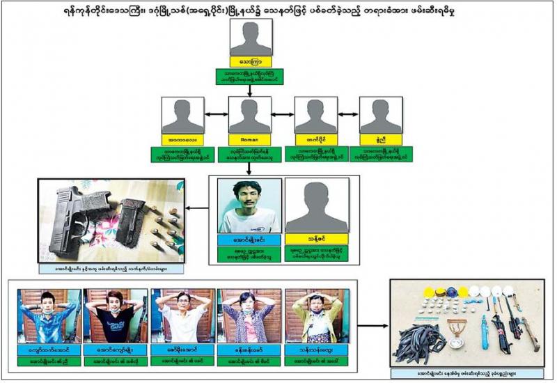 မြို့နယ်အချို့၌ အကြမ်းဖက်မှုလုပ်ရပ်များတွင် အသုံးပြုမည့် လက်နက်၊ ပစ္စည်း၊ ကိရိယာများနှင့် သိုဝှက်သိမ်းဆည်းထားရှိသူများအား ဆက်လက်ဖော်ထုတ် ဖမ်းဆီးရမိခဲ့ကြောင်း သိရသည်။