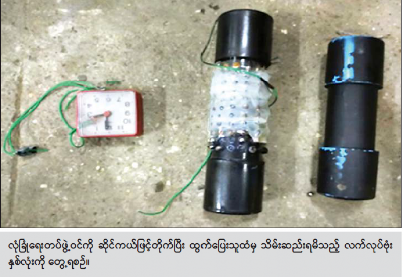 ရန်ကုန်တိုင်းဒေသကြီး၊ ထန်းတစ်ပင်မြို့နယ်၌ ယာဉ်စစ်ဆောင်ရွက်နေသော လုံခြုံရေးတပ်ဖွဲ့ဝင် တစ်ဦးအား ဆိုင်ကယ်ဖြင့် တိုက်ပြေးသူ အမျိုးသားတစ်ဦးအား ခြောက်လှန့်ပစ်ခတ်ဖမ်းဆီးခဲ့ပြီး ၎င်းထံမှ လက်လုပ်ဗုံး ၂ လုံး သိမ်းဆည်းရရှိခဲ့ကြောင်း သိရသည်။