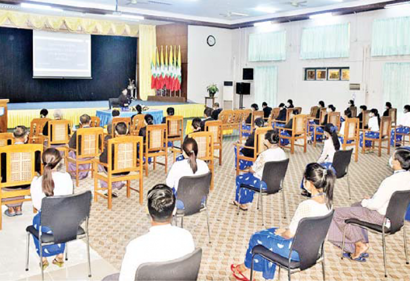 ပြည်ထောင်စုရှေ့နေချုပ်ရုံး၏ ရုံးအုပ်နှင့် ဌာနခွဲ စာရေးများ လုပ်ငန်းခွင်ကျွမ်းကျင်မှုသင်တန်း အမှတ်စဉ်(၂/၂၀၂၁) သင်တန်းဖွင့်ပွဲအခမ်းအနားကို ယနေ့နံနက် ၉ နာရီခွဲက ကျင်းပသည်။