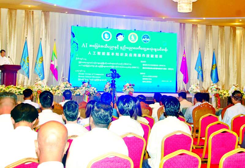 မြန်မာအနုပညာနှင့် ယဉ်ကျေးမှုဖွံ့ဖြိုးတိုးတက်ရေးအသင်း(ဗဟို) ကဦးစီးပြီး တက်ဟုန်းပြည်နယ်ခွဲ ကုန်သည်ကြီးများအသင်း မြန်မာနိုင်ငံကိုယ်စားလှယ်ရုံးနှင့် တက်ဟုန်းပြည်နယ်သက်မွေးဝမ်းကျောင်းပညာကောလိပ်တို့ ပူးပေါင်းစီစဉ်သည့် Al နည်းပညာလက်တွေ့အသုံးချ သင်တန်းဖွင့်ပွဲအခမ်းအနားကို ယနေ့နံနက်ပိုင်းက ရန်ကင်းမြို့နယ် မိုးကောင်းလမ်းရှိ မြဝတီမီဒီယာစင်တာ၌ ကျင်းပသည်။