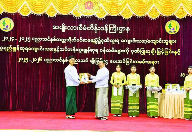 ၂၀၂၄-၂၀၂၅ ပညာသင်နှစ် တက္ကသိုလ်ဝင်စာမေးပွဲတွင် ထူးချွန်စွာအောင်မြင်ခဲ့ကြသည့် အမျိုးသားစီမံကိန်းဝန်ကြီးဌာနရှိ ဝန်ထမ်းသားသမီးများဖြစ်သည့် ကျောင်းသား ကျောင်းသူများ၊ လူရည်ချွန်ဆုရကျောင်းသားနှင့် သင်တန်းထူးချွန်ဆုရဝန်ထမ်းများအား ဂုဏ်ပြုဆုချီးမြှင့်ခြင်းနှင့် ၂၀၂၅-၂၀၂၆ ပညာသင်နှစ်အတွက် ပညာသင်ချီးမြှင့်ငွေ ပေးအပ်ခြင်းအခမ်းအနားကို ယနေ့မွန်းလွဲပိုင်းတွင် နေပြည်တော်ရှိ အမျိုးသားစီမံကိန်းဝန်ကြီးဌာန အစည်းအဝေးခန်းမ၌ကျင်းပသည်။