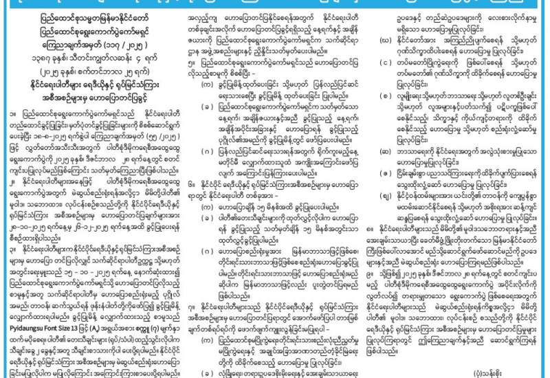 ရန်ကုန်မြို့နှင့် မန္တလေးမြို့အတွက် ရည်ညွှန်းလက်ကားဈေးနှုန်းများနှင့် ပြည်ထောင်စုနယ်မြေ နေပြည်တော်၊ တိုင်းဒေသကြီး/ပြည်နယ် မြို့တော်များအတွက် ရည်ညွှန်းလက်လီဈေးနှုန်းများ