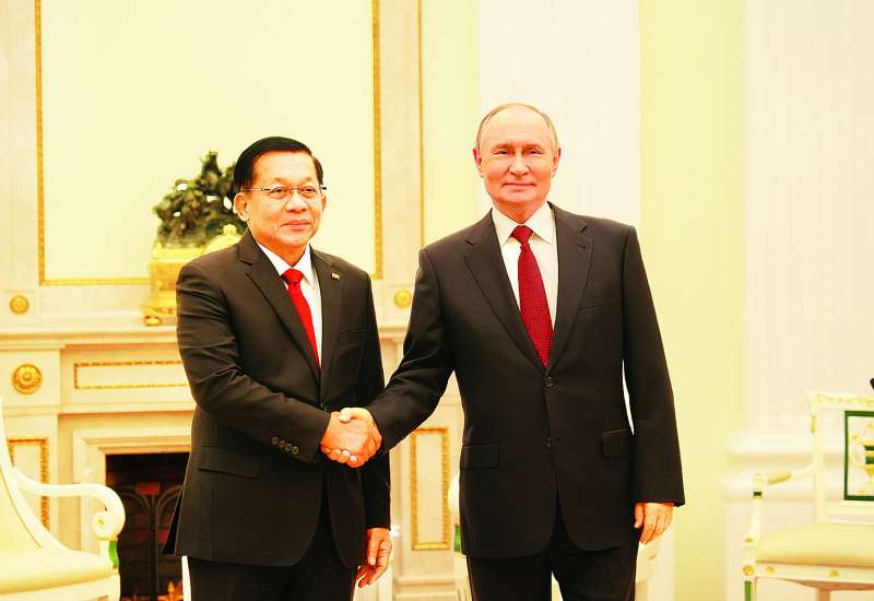 ရုရှားဖက်ဒရေးရှင်းနိုင်ငံသမ္မတ မစ္စတာဗလာဒီမာပူတင်၏ ဖိတ်ကြားချက်အရ ရုရှားဖက်ဒရေးရှင်းနိုင်ငံသို့ အလုပ်သဘောခရီးရောက်ရှိနေသည့် ပြည်ထောင်စုသမ္မတမြန်မာနိုင်ငံတော် ယာယီသမ္မတ နိုင်ငံတော်လုံခြုံရေးနှင့်အေးချမ်းသာယာရေးကော်မရှင်ဥက္ကဋ္ဌ ဗိုလ်ချုပ်မှူးကြီး မင်းအောင်လှိုင်သည် ယနေ့ညပိုင်းတွင် မော်စကိုမြို့ ကရင်မလင်နန်းတော်၌ ရုရှားဖက်ဒရေးရှင်းနိုင်ငံသမ္မတ H.E. Vladimir Vladimirovich Putin နှင့် တွေ့ဆုံဆွေးနွေးသည်။