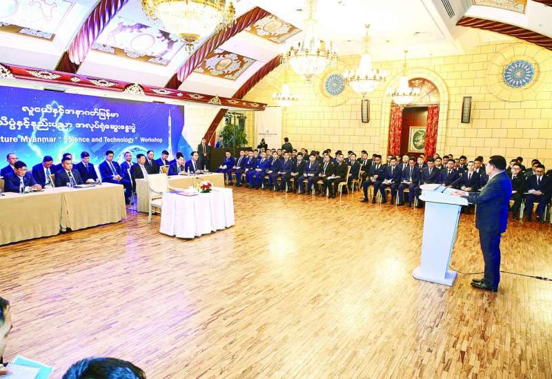 “လူငယ်နှင့်အနာဂတ်မြန်မာ-သိပ္ပံနှင့်နည်းပညာ” ခေါင်းစဉ်ဖြင့် သိပ္ပံပညာရပ်ဆိုင်ရာ အလုပ်ရုံဆွေးနွေးပွဲကို ယနေ့နံနက်ပိုင်းတွင် ရုရှားဖက်ဒရေးရှင်းနိုင်ငံမော်စကိုမြို့ RADISSON COLLECTION ဟိုတယ်၊ Conference Hall ၌ ကျင်းပပြုလုပ်ရာ ပြည်ထောင်စုသမ္မတမြန်မာနိုင်ငံတော်ယာယီသမ္မတ နိုင်ငံတော်လုံခြုံရေးနှင့်အေးချမ်းသာယာရေးကော်မရှင်ဥက္ကဋ္ဌ ဗိုလ်ချုပ်မှူးကြီး မင်းအောင်လှိုင်တက်ရောက်အမှာ စကားပြောကြားသည်။