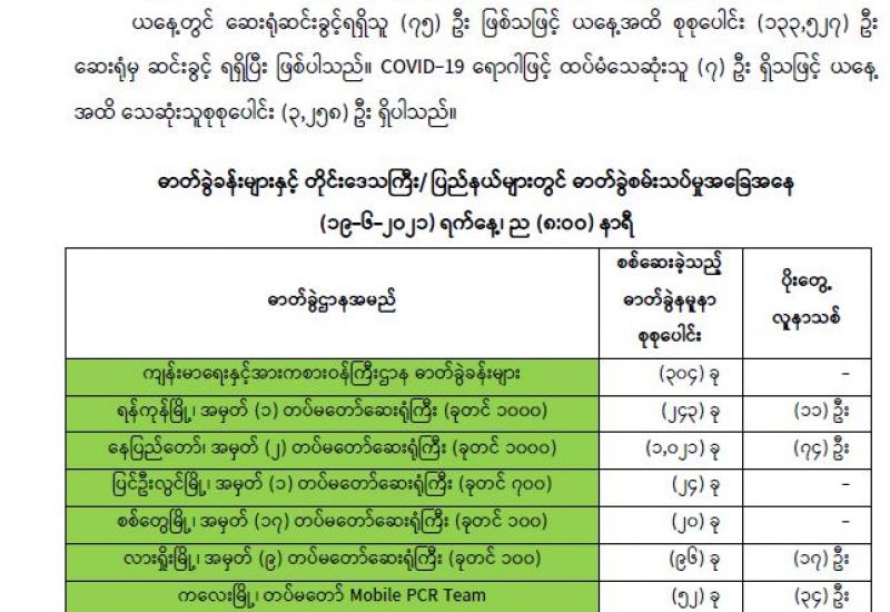 (၂၀၂၁ ခုနှစ်၊ ဇွန်လ (၁၉)ရက်နေ့ ည(၇:၀၀)နာရီအချိန် ထုတ်ပြန်ချက်)