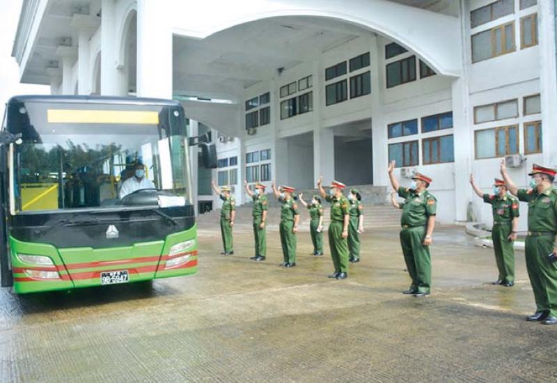 COVID-19 ရောဂါ ကာကွယ်၊ ထိန်းချုပ်ကုသရေးလုပ်ငန်းများ အရှိန်အအဟုန်မြှင့် ဆောင်ရွက် လျက်ရှိပြီး ရန်ကုန်တိုင်းစစ်ဌာနချုပ်နယ်မြေအတွင်းရှိ ကုသရေးဆေးရုံများ၌ ကျန်းမာရေး ဝန်ထမ်းများ မလုံလောက်မှုကြောင့် ထပ်မံဖွင့်လှစ်ထားရှိသည့် ရန်ကုန်တိုင်းဒေသကြီး၊ လှည်းကူးမြို့နယ် COVID-19 ရောဂါကုသရေးဌာန(ဖောင်ကြီး)တွင် တပ်မတော်မှ ပါဝင် ကူညီဆောင်ရွက်ရန်အတွက် ဆေးဝန်ထမ်းတပ်ဖွဲ့ဝင် ပါရဂူများ၊ ဆေးမှူးများ၊ သူနာပြုများ ပါဝင်သောအဖွဲ့က သွားရောက်တာဝန်ထမ်းဆောင်လျက်ရှိသည်။