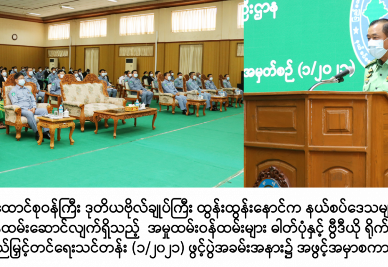 နယ်စပ်ရေးရာဝန်ကြီးဌာန၊ ကွပ်ကဲမှုအောက်ရှိ ဦးစီးဌာနရုံးချုပ်၊ တိုင်းဒေသကြီး/ပြည်နယ် ဖွံ့ဖြိုးမှုကြီးကြပ်ရေးရုံးများနှင့် နယ်စပ်ဒေသများတွင် တာဝန်ထမ်းဆောင် လျက်ရှိသည့် အမှုထမ်း ဝန်ထမ်းများအတွက် လေ့ကျင့်သင်ကြားပေးသည့် ဓါတ်ပုံနှင့်ဗွီဒီယို ရိုက်ကူးရေး စွမ်းဆောင်ရည် မြှင့်တင်ရေးသင်တန်း ၁/၂၀၂၁ ဖွင့်ပွဲအခမ်းအနားကို ယနေ့နံနက် ၉ နာရီခွဲတွင် နယ်စပ်ရေးရာဝန်ကြီးဌာန၊ စုပေါင်းအစည်းအဝေးခန်းမ၌ ကျင်းပသည်။