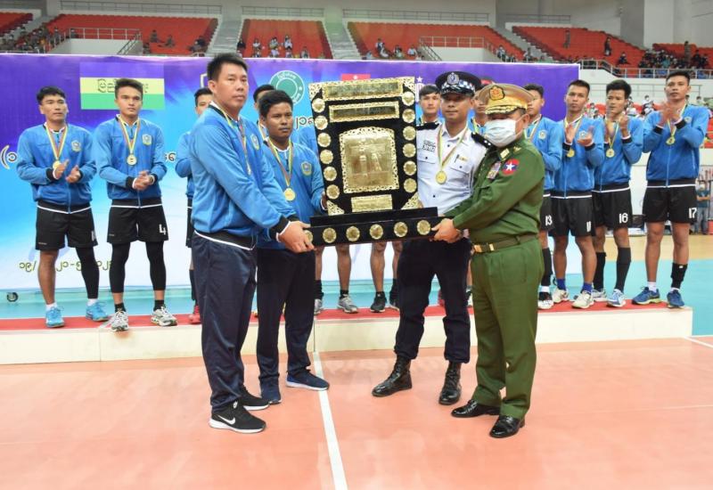 (၁၈)ကြိမ်မြောက် ပြည်ထဲရေးဝန်ကြီးဌာန၊ ပြည်ထောင်စုဝန်ကြီး တံခွန်စိုက်ဒိုင်း(အမျိုးသား/ အမျိုးသမီး)ဘော်လီဘောပြိုင်ပွဲ ဗိုလ်လုပွဲနှင့် ဆုချီးမြှင့်ပွဲအခမ်းအနားကို ယနေ့ မွန်းလွဲ (၃)နာရီတွင် နေပြည်တော် ဝဏ္ဏသိဒ္ဓိအားကစားကွင်း(B)ရုံတွင် ကျင်းပရာ နိုင်ငံတော်စီမံအုပ်ချုပ်ရေးကောင်စီ အဖွဲ့ဝင်၊ ပြည်ထဲရေးဝန်ကြီးဌာန၊ ပြည်ထောင်စုဝန်ကြီး ဒုတိယဗိုလ်ချုပ်ကြီး စိုးထွဋ်နှင့် ဇနီး၊ ဒုတိယ ဝန်ကြီးများနှင့် ဇနီးများ၊ ပြည်ထဲရေးဝန်ကြီးဌာနမှ အရာရှိကြီးများနှင့် ဇနီးများ၊ တပ်ဖွဲ့/ဦးစီးဌာနများမှ တပ်ဖွဲ့ဝင်များနှင့် ဝန်ထမ်းမိသားစုဝင်များတက်ရောက်ကြည့်ရှုအားပေးခဲ့ကြသည်။