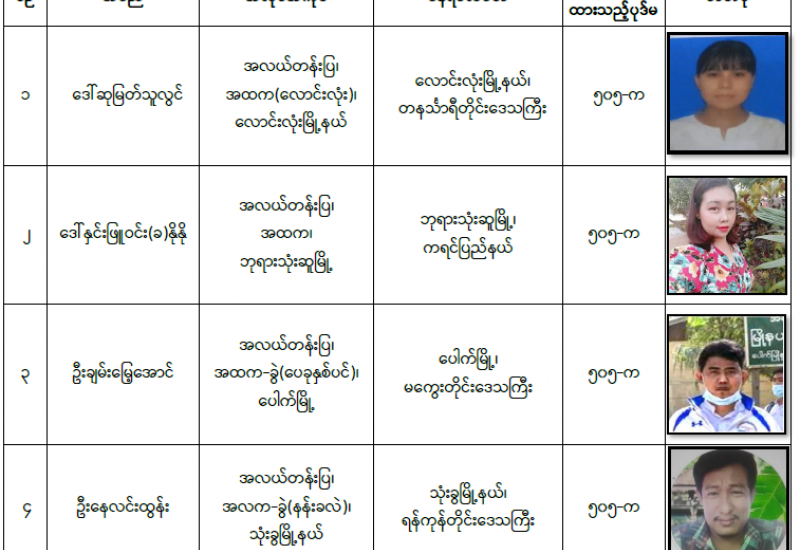 နိုင်ငံတော်၏အုပ်ချုပ်မှုယန္တရားပျက်ပြားစေရန် ရည်ရွယ်ချက်ဖြင့် နိုင်ငံ့ဝန်ထမ်းများနှင့် ကျန်းမာရေးဝန်ထမ်းများအား CDM လှုပ်ရှားမှုများတွင် ပါဝင်လာစေရန် လှုံ့ဆော်ခြင်း၊ ၎င်းတို့ကိုယ်တိုင် CDM လှုပ်ရှားမှုများတွင် ပါဝင်လုပ်ဆောင်ခြင်း၊ CDM လှုပ်ရှားမှု အပေါ် ထောက်ခံအားပေးခြင်း၊ အကြမ်းဖက်အုပ်စုများအဖြစ် သတ်မှတ်ကြေညာထားသည့် CRPH နှင့် NUG တို့အား ထောက်ခံအားပေးခြင်းတို့ကို ဆောင်ရွက်လျက်ရှိသည့် အောက်ဖော် ပြပါ သူနာပြုများအား ရာဇသတ်ကြီးပုဒ်မ ၅၀၅-က ဖြင့် အမှုဖွင့်အရေးယူဆောင်ရွက် ထားပြီးဖြစ်ပါသည်-