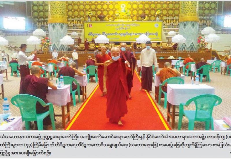 နိုင်ငံတော်သံဃမဟာနာယကအဖွဲ့ ဥက္ကဋ္ဌ အဘိဓဇမဟာရဋ္ဌဂုရု၊ အဘိဓဇအဂ္ဂမဟာ သဒ္ဓမ္မဇောတိက ဒေါက်တာဘဒ္ဒန္တကုမာရာဘိဝံသ(ဗန်းမော်ဆရာတော်)၊ အကျိုးတော်ဆောင် အဂ္ဂမဟာပဏ္ဍိတ၊ အဂ္ဂမဟာ သဒ္ဓမ္မဇောတိကဓဇ ဒေါက်တာဘဒ္ဒန္တစန္ဒိမာဘိဝံသ (သန်လျှင်မင်း ကျောင်းဆရာတော်)နှင့် နိုင်ငံတော်သံဃ မဟာနာယကအဖွဲ့၊ တာဝန်ကျ(ပထမအဖွဲ့ခွဲ)မှ ဒုတိယဥက္ကဋ္ဌ အဂ္ဂမဟာပဏ္ဍိတ ဘဒ္ဒန္တနန္ဒသာရ(သံဖြူဇရပ်)၊ တွဲဖက်အကျိုးတော်ဆောင် ဆရာတော် အဂ္ဂမဟာပဏ္ဍိတ၊ အဂ္ဂမဟာသဒ္ဓမ္မဇောတိကဓဇ ဘဒ္ဒန္တသေဋ္ဌိလ (ပြည်)နှင့် တွဲဖက် အကျိုးတော်ဆောင်ဆရာတော် အဂ္ဂမဟာသဒ္ဓမ္မဇောတိကဓဇ၊ အဂ္ဂမဟာဂန္ထဝါစက ပဏ္ဍိတ၊ ဓမ္မကထိကဗဟုဇန ဟိတဓရ ဒေါက်တာဘဒ္ဒန္တတေဇောသာရာဘိဝံသ (မိုးကုတ်) ဆရာတော်ကြီး တို့သည် သာသနာရေးဦးစီးဌာနမှ တာဝန်ရှိသူများနှင့်အတူ ယနေ့ မွန်းလွဲ (၂)နာရီခွဲတွင် ရန်ကုန်မြို့၊ သီရိမင်္ဂလာ ကမ္ဘာအေးကုန်းမြေ၊ မဟာပါသာဏလိုဏ်ဂူ သိမ်တော်ကြီး၌ (၇၃)ကြိမ်မြောက် တိပိဋကဓရ တိပိဋကကောဝိဒ ရွေးချယ်ရေး (သဘောရေးဖြေ) စာမေးပွဲ ဖြေဆိုလျက်ရှိကြသော စာဖြေသံဃာများအား လိုက်လံကြည့်ရှု အားပေးချီးမြှောက်သည်။