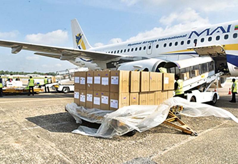 အိန္ဒိယနိုင်ငံ၌ ကိုဗစ် − ၁၉ ရောဂါဖြစ်ပွားမှုမြင့်တက်နေသည့်ကာလအတွင်း ရောဂါကာကွယ်၊ ထိန်းချုပ်၊ ကုသရေးလုပ်ငန်းများတွင် အသုံးပြုနိုင်ရန်နှင့် အိန္ဒိယနိုင်ငံ ဆိုင်ရာ မြန်မာနိုင်ငံသံရုံးရှိ ဝန်ထမ်းများအတွက် နိုင်ငံတော်စီမံအုပ်ချုပ်ရေးကောင်စီက လှူဒါန်းသည့် ကိုဗစ် − ၁၉ ရောဂါ ကာကွယ်၊ ထိန်းချုပ်၊ ကုသရေး အထောက်အကူပြု ဆေးပစ္စည်းများကို ယနေ့နံနက်ပိုင်းတွင် အပြည်ပြည်ဆိုင်ရာ မြန်မာလေကြောင်းလိုင်းမှ အထူးလေယာဉ် နှစ်စင်းတို့ဖြင့် နေပြည်တော် လေဆိပ်နှင့် ရန်ကုန်အပြည်ပြည်ဆိုင်ရာ လေဆိပ်တို့မှ သွားရောက်ပို့ဆောင်လှူဒါန်းသည်။