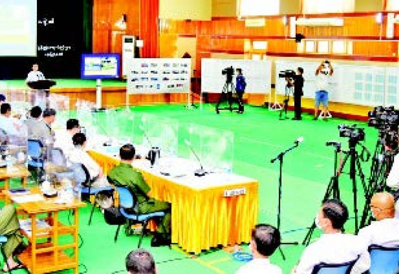 နိုင်ငံတော်စီမံအုပ်ချုပ်ရေးကောင်စီ သတင်းထုတ်ပြန် ရေးအဖွဲ့၏ (၅/၂၀၂၁)ကြိမ်မြောက် သတင်းစာရှင်းလင်း ပွဲကို ယနေ့မွန်းလွဲပိုင်းတွင် ပြန်ကြားရေးဝန်ကြီး ဌာန၌ ကျင်းပပြုလုပ်ပြီး နိုင်ငံတော်စီမံအုပ်ချုပ်ရေး ကောင်စီ သတင်း ထုတ်ပြန်ရေးအဖွဲ့ ခေါင်းဆောင် ဗိုလ်ချုပ်ဇော်မင်းထွန်း၊ ပြည်ထောင်စုရွေးကောက် ပွဲကော်မရှင်အဖွဲ့ဝင် ဦးခင်မောင်ဦး၊ မြန်မာနိုင်ငံတော် ဗဟိုဘဏ် ဒုတိယဥက္ကဋ္ဌ ဦးဝင်းသော်နှင့် ဌာနဆိုင်ရာ သတင်းထုတ်ပြန်ရေးအဖွဲ့ ကိုယ်စား လှယ်များက သတင်းမီဒီယာများ၏ သိရှိလိုသည့်မေးမြန်းမှုများကို ပြန်လည်ဖြေကြားသည်။