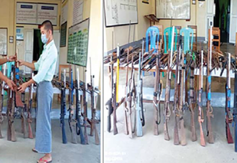 တိုင်းဒေသကြီး၊ ပြည်နယ်များရှိ မြို့နယ် အချို့၌ လက်နက်ကိုင်ဆောင်လိုခြင်း မရှိဘဲ အေးချမ်းစွာ နေထိုင်လိုသည့် ပြည်သူလူထုမှ၎င်းတို့၏ သဘောဆန္ဒ အလျောက် ၎င်းတို့ထံတွင်ရှိသော လက်လုပ်သေနတ်နှင့် တူမီးသေနတ် များကို အုပ်ချုပ်ရေးတာဝန်ရှိသူများမှ တစ်ဆင့် လုံခြုံရေးတပ်ဖွဲ့ဝင်များထံ လာရောက်အပ်နှံခဲ့ကြောင်း သိရသည်။