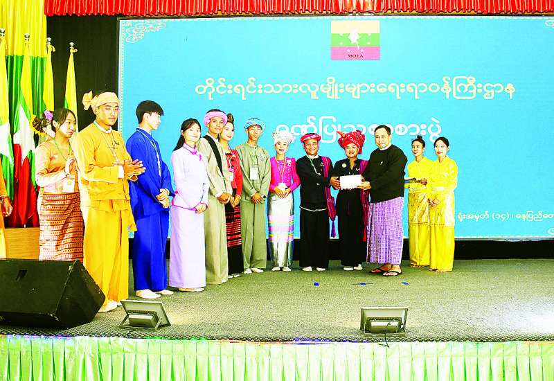ရှမ်းပြည်နယ်မှ လေ့လာရေးခရီးလာရောက်ကြသည့် တိုင်းရင်းသားစာပေနှင့် ယဉ်ကျေးမှုအသင်းအဖွဲ့များမှ ကိုယ်စားလှယ်များအား တည်ခင်းဧည့်ခံသည့် ဂုဏ်ပြုညစာစားပွဲ အခမ်းအနားကို ယမန်နေ့ညနေ ၆ နာရီက တိုင်းရင်းသားလူမျိုးများရေးရာဝန်ကြီးဌာန ပြည်ထောင်စုဝန်ကြီးရုံး အစည်းအဝေးခန်းမ၌ ကျင်းပသည်။