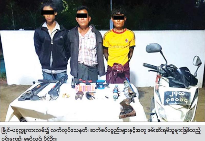 လုံခြုံရေးတပ်ဖွဲ့ဝင်များသည် ဆူပူအကြမ်းဖက်မှုလုပ်ရပ်များတွင် အသုံးပြုမည့် လက်နက်၊ ပစ္စည်း၊ ကိရိယာများအား ဆက်လက် ဖော်ထုတ်သိမ်းဆည်းလျက်ရှိရာ မေ ၁၂ ရက် ညနေ ၄ နာရီ ၄၅ မိနစ်ခန့်တွင် ပဲခူးတိုင်းဒေသကြီး၊ ညောင်လေးပင်မြို့နယ်၊ သရက်ကုန်းကျေးရွာနေ စံထူး (၄၂)နှစ် (ဘ)ဦးအေးမောင်ကို အကြမ်းဖက်ရာတွင် အသုံးပြုသည့် ပစ္စည်းများနှင့် လည်းကောင်း၊ ညနေ ၆ နာရီခွဲခန့်တွင် စစ်ကိုင်းတိုင်းဒေသကြီး၊ ကျွန်းလှမြို့၊ သစ်ရာမြိုင် ရပ်ကွက်နေ ဇော်ဇော်အောင် (၁၉)နှစ် (ဘ)ဦးတင်စိုးကို လက်လုပ်သေနတ် ၁ လက်၊ ဆက်စပ် ပစ္စည်းများနှင့် လည်းကောင်း ဖမ်းဆီးရမိခဲ့သည်။