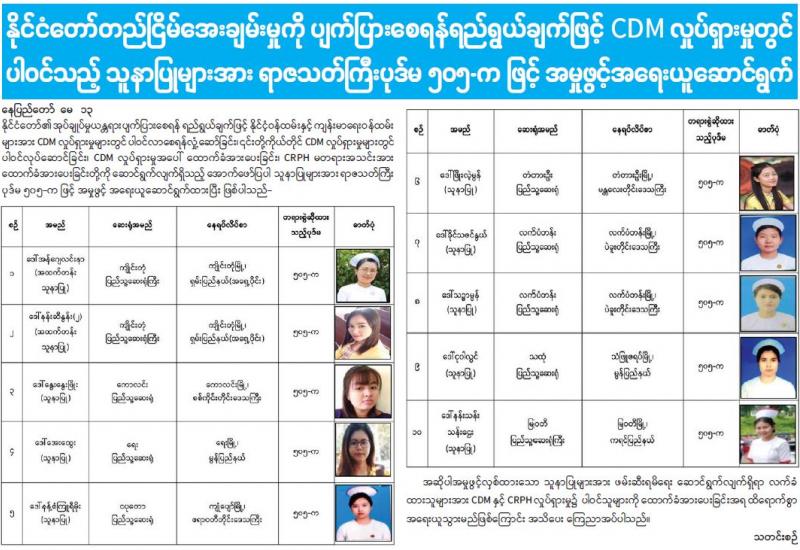 မန္တလေးတိုင်းဒေသကြီး မြင်းခြံမြို့နယ် တလုပ်မြို့ကျေးရွာ၌ ဆူပူအကြမ်းဖက် ဆန္ဒပြသူများ အား ဖြိုခွဲထိန်းသိမ်းစဉ် လုံခြုံရေးတပ်ဖွဲ့ဝင် ခြောက်ဦး ထိခိုက်ဒဏ်ရာရရှိကာ ဆူပူအကြမ်းဖက် သူအမျိုးသား ငါးဦးနှင့် အမျိုးသမီး တစ်ဦးတို့ကို ဆူပူအကြမ်းဖက် ရာတွင် အသုံးပြုသည့် လက်နက်/ ခဲယမ်း၊ ဆက်စပ်ပစ္စည်းများနှင့်အတူ ဖမ်းဆီးရမိခဲ့ပြီး ထိရောက်စွာ အရေးယူနိုင်ရေး ဆောင်ရွက် လျက်ရှိသည်။