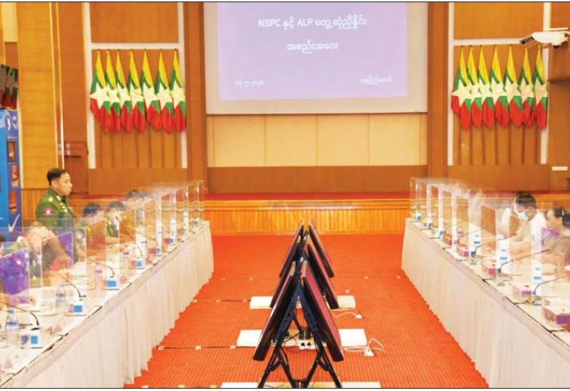 အမျိုးသားစည်းလုံးညီညွတ်ရေးနှင့် ငြိမ်းချမ်းရေးဖော်ဆောင်မှု ညှိနှိုင်းရေးကော်မတီ (NSPNC) နှင့် ရခိုင်ပြည်လွတ်မြောက်ရေးပါတီ(ALP)တို့ တွေ့ဆုံညှိနှိုင်း အစည်းအဝေးကို ယနေ့နံနက် ၁၀ နာရီတွင် နေပြည်တော်ရှိ အမျိုးသားစည်းလုံးညီညွတ်ရေးနှင့် ငြိမ်းချမ်းရေးဖော်ဆောင်မှု ဗဟိုဌာန အစည်းအဝေးခန်းမ၌ ကျင်းပသည်။
