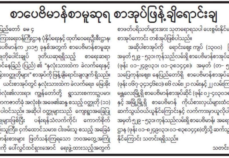 မကြာမီ မိုးရာသီကျရောက်လာတော့မည်ဖြစ်ရာ နှစ်စဉ်ကဲ့သို့ပင် သစ်ပင်စိုက်ပျိုးပွဲတော်များ ကျင်းပပြီး သစ်ပင်များ စိုက်ပျိုးကြတော့မည်။ သစ်တောနှင့် သစ်ပင် ချစ်ခင်တဲ့လူမျိုး၊ သစ်ပင်ကို နှစ်စဉ်စိုက်၊ ရွှေတိုက်ကိုစိုးဟုဆိုသည့် သစ်ပင်စိုက်ပျိုးရေး နှိုးဆော်သည့် ဆောင်ပုဒ်ကလေးကိုပင် အားမနာဘဲသစ်ပင်များကို ခုတ်ထွင်ဖယ်ရှားရန် လက်မနှေးသူ များစွာရှိကြရာ မြို့ပြဒေသ လူတို့ အနီးရှိ သစ်ပင်များရော တောတောင်များရှိ သစ်ပင်များပါ ခုတ်လှဲခံနေကြရသည်ကို တွေ့နေကြရ သည်။