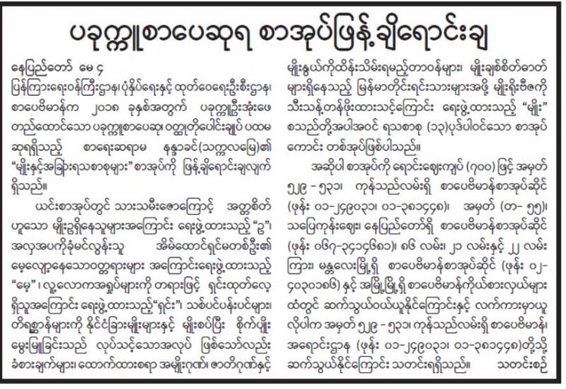 မြောက်ဦးယဉ်ကျေးမှု အမွေအနှစ်ဒေသ ကမ္ဘာ့အမွေအနှစ်စာရင်း တင်သွင်းရေးအတွက် ညှိနှိုင်း အစည်းအဝေးကို ယနေ မွန်းလွဲ ၁ နာရီခွဲတွင် ရှေးဟောင်းသုတေသနနှင့် အမျိုးသားပြတိုက် ဉီးစီးဌာန၊ ရန်ကုန်ဌာနခွဲ အစည်းအဝေးခန်းမ၌ ကျင်းပသည်။