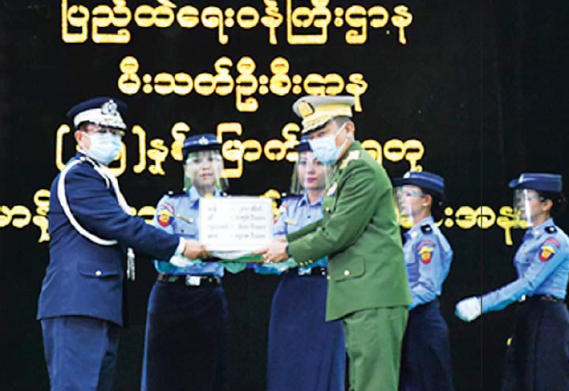 (၇၅) နှစ်မြောက် စိန်ရတု မြန်မာနိုင်ငံ မီးသတ်တပ်ဖွဲ့နေ့ အခမ်းအနားကို ယနေ့နံနက်ပိုင်း တွင် ရန်ကုန်တိုင်းဒေသကြီး မရမ်းကုန်းမြို့နယ် အမှတ် (၅) စွယ်တော်မြတ်စေတီ အနီးရှိ မြန်မာနိုင်ငံ မီးသတ်တပ်ဖွဲ့ ဌာနချုပ်ဝင်းအတွင်း၌ ကျင်းပ ပြုလုပ်ရာ နိုင်ငံတော် စီမံအုပ်ချုပ် ရေးကောင်စီအဖွဲ့ဝင် ပြည်ထဲရေး ဝန်ကြီးဌာနနှင့် ပြည်ထောင်စု အစိုးရအဖွဲ့ရုံး ဝန်ကြီးဌာန ပြည်ထောင်စုဝန်ကြီး ဒုတိယ ဗိုလ်ချုပ်ကြီး စိုးထွဋ် တက်ရောက် မိန့်ခွန်းပြောကြားသည်။