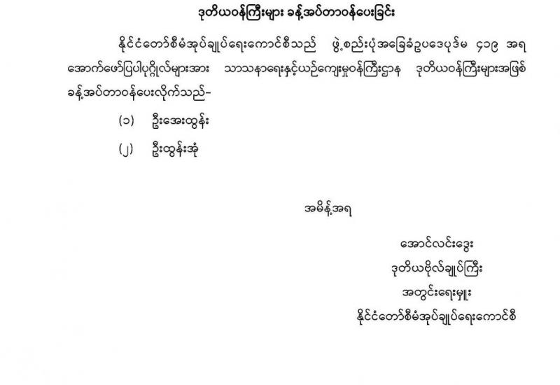 ပြည်ထောင်စုရွေးကောက်ပွဲကော်မရှင်၏သတင်းထုတ်ပြန်ချက် ၂၀၂၁ ခုနှစ်၊ ဧပြီလ ၂၄ ရက်