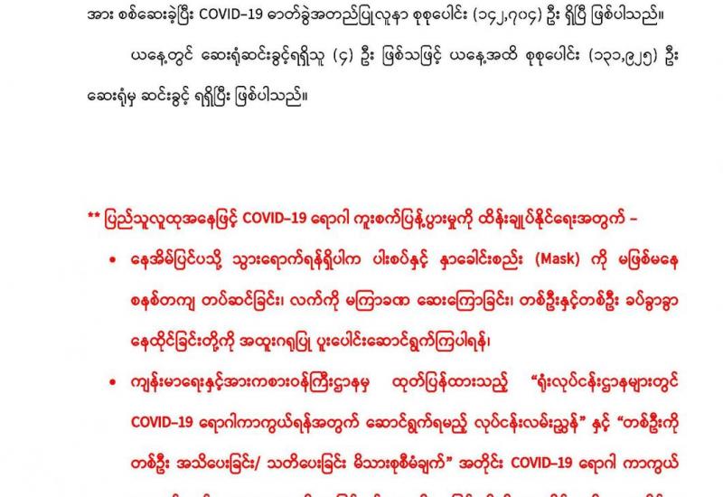 COVID-19 ရောဂါစောင့်ကြပ်ကြည့်ရှုမှုနှင့်ပတ်သက်၍ သတင်းထုတ်ပြန်ခြင်း