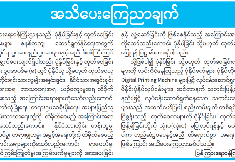 ပြည်ထောင်စုရွေးကောက်ပွဲကော်မရှင်၏ သတင်းထုတ်ပြန်ချက် ၂၀၂၁ ခုနှစ်၊ ဧပြီလ ၁၁ ရက်